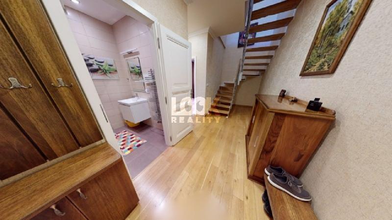Nabízíme k prodeji luxusní mezonetový byt 3+kk o celkové ploše 119,8 m2 s terasou (7,48 m2), který se nachází v 5. a 6. nadzemním Rozbalitpodlaží domu s výtahem v ulici Drtinova. Byt je kompletně zařízený luxusním nábytkem vyrobeným namíru z přírodního ořechu (včetně vestavěných skříní). V prvním patře se nachází chodba, dvě samostatné ložnice, koupelna a toaleta. V druhém patře je pak kuchyně s komorou, obývací pokoj s jídelnou a terasa. Kuchyňská linka s pracovní deskou z afrického kamene je vybavená veškerými spotřebiči. V koupelně je vana a toaleta. Další toaleta je společně s pračkou zvlášť. Obývací pokoj je orientovaný na východ, ložnice na západ. Další vybavení: inteligentní domácnost na ovládání vytápění, klimatizace v obývacím pokoji, parkety z přírodního dubu, bezpečnostní vchodové dveře. Plynová kotelna pro celý dům. K bytu náleží sklep v suterénu. Z terasy je nádherný výhled na celou Prahu, Muzeum a další památky Prahy. V sousední budově lze pronajmout garáž. Dům se nachází v lokalitě s výbornou dopravní dostupností - pár minut od domu je tramvajová zastávka Švandovo divadlo - dvě minuty metro B - Anděl. V okolí veškerá občanská vybavenost. V pěší vzdálenosti nákupní centrum Anděl, zahrada Kinských, Petřínské sady, Petřínská rozhledna, nábřeží Vltavy. Luxusní bydlení a skvělá investice, doporučujeme.Zajišťujeme i rekonstrukci bytů a rodinných domů. Pokud byste chtěli na dané nemovitosti něco změnit. Naše realitní kancelář Vam pomůže zajistit i úklid.