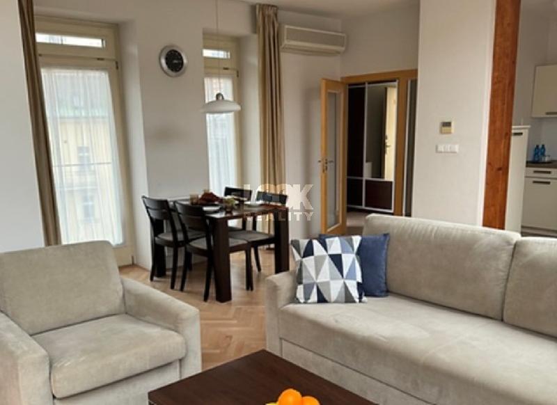 Nabízíme k pronájmu luxusní byt 3+kk o velikosti 97 m2, který se nachází v rezidenci Ostrovní nedaleko Národního divadla. Byt se p Rozbalitronajímá kompletně zařízený nábytkem a tvoří jej předsíň, obývací pokoj s kuchyňským koutem jídelnou, dvě neprůchozí ložnice, kopelna a toaleta. Kuchyňská linka je vybavená veškerými spotřebiči (sklokeramická varná deska, vestavná trouba, myčka, mikrovlnná trouba, chladnička s mrazákem, varná konvice, kávovar Nespresso, toaster). V koupelně je vana a pračka, toaleta je zvlášť. Hlavní ložnice je zařízená manželskou postelí, pracovním stolem a komodami. V druhé ložnici se nachází postel, komody a pracovní stůl. V předsíni je vestavěná skříň a botník. K bytu náleží také soukromá pavlač. Další vybavení: LCD TV, klimatizace, nádobí, žehlička, žehlící prkno, sušák na prádlo, koupelnový textil a ložní prádlo. Cena zahrnuje Wi-Fi internet, satelitní TV, úklid apartmánu s výměnou ložního prádla a koupelnového textilu 1x týdně, místní poplatky, technickou údržbu. Parkovat lze ve vedlejší ulici Divadelní za příplatek, nebo v garážích Národního divadla přímo před domem. Byt je možný pronajmout i na krátkodobý pronájem. Dům se nachází v lokalitě s výbornou dopravní dostupností - 2 minuty chůze metro a tramvajová zastávka Národní třída. Krásná lokalita blízko řeky Vltavy. V okolí mnoho historických památek. Veškerá občanská vybavenost v místě: restaurace, obchody, bary, škola, školka, pošta. Příjemné bydlení, doporučujeme.