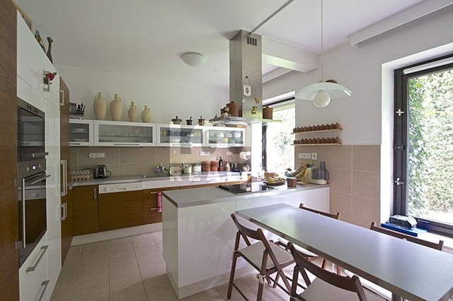 Nabízíme k pronájmu rodinný dům po rekonstrukci o velikosti 417 m2 v ulici Ke Hrádku na Praze 4. V domě jsou 4 koupelny, 5 ložnic Rozbalits šatními skříněmi a šatnami, kuchyň, velký obývací pokoj s jídelním koutem a krbem, prádelna, sportovní místnost, vinný sklep, komora, kůlna na zahradní nářadí. Nová kuchyňská linka je vybavena veškerými spotřebiči: lednice, mrazák, myčka, varná deska, trouba, mikrovlnná trouba. V celém domě jsou namontována nová světla a ve všech pokojích je nová dřevěná podlaha. V domě je dále zaveden zabezpečovací systém, internet, telefonní linky, příjem satelitních programů. K domu patří krásná zahrada (1000 m2), ideální místo pro relaxování, posezení s rodinou nebo přáteli. Nutná údržba zahrady. K dispozici je garáž, otevřená garáž nebo 2 parkovací místa. Nedaleko domu se nachází autobusové zastávky Volha a U Kunratického lesa. Stanice metra C -Chodov 4 minuty jízdy. Centrum je vzdálené cca 25 minut jízdy. Okolí nabízí veškerou občanskou vybavenost: školy (VŠE, ZŠ), nákupní centrum Chodov, sportovní areály, pošta, restaurace, poliklinika. Pět minut chůze od domu se nachází Kunratický les s vyznačenými cestami k procházkám, či ke sportu. Nachází se zde také rybník, který se v zimě využívá pro bruslení. Dům je umístěn ve velice krásné lokalitě, příjemné bydlení. K dispozici od 15.12.2025.