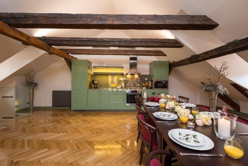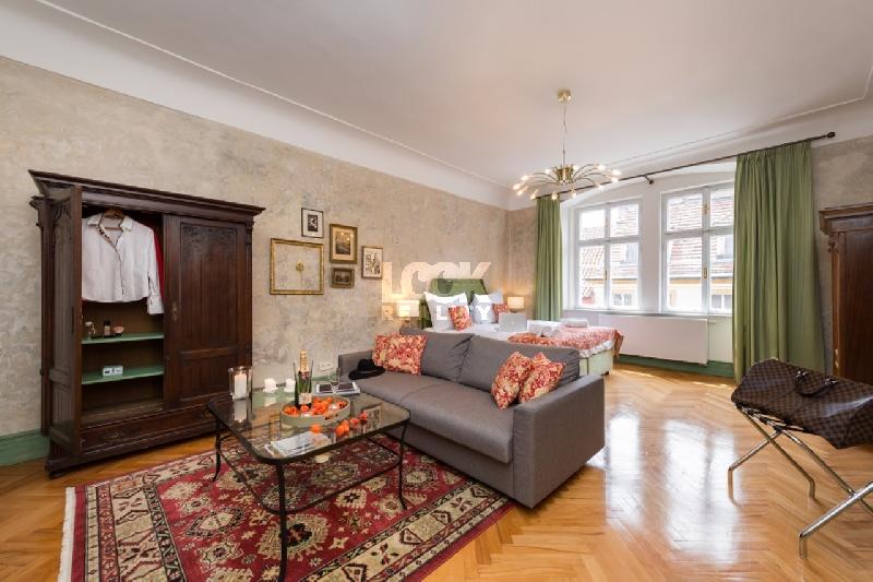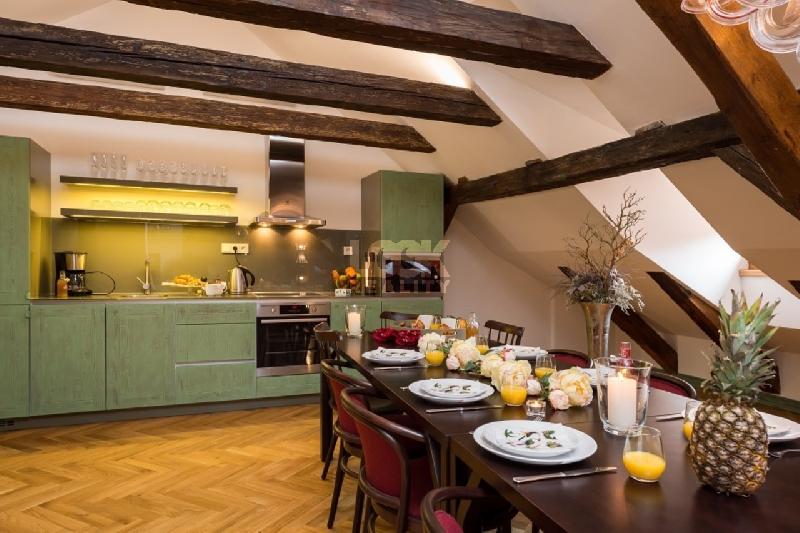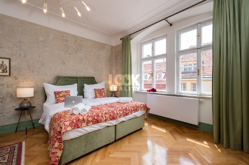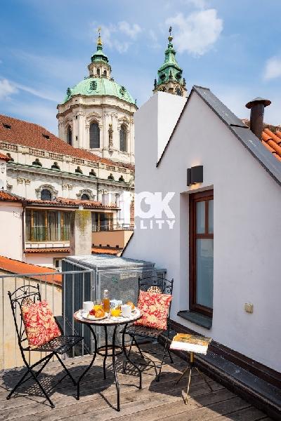 K pronájmu nabízíme krásný mezonetový byt 7+kk o velikosti 306 m2. Byt se nachází ve 3. patře historického domu s výtahem. Byt se Rozbalitpronajímá zařízený nábytkem. Byt tvoří kuchyňská linka vybavena myčkou, lednicí, sklokeramickou deskou, elektrickou troubou, mikrovlnkou. V obývací části prostorná sedací souprava, jídelní stůl s židlemi, TV. V 5ti neprůchozích ložnicích jsou manželské postele, v jedné ložnici jednolůžko, všechny vybaveny skříněmi a konferenčními stolky. V bytě jsou dvě koupelny, jedna s vanou, jedna se sprchovým koutem. Toalety zvlášť. Na podlahách dřevěné parkety. K bytu náleží terasa nabízející krásný výhled na Prahu. Tramvajová zastávka Malostranské náměstí je od bytu vzdálena 5 minut chůzí. Ke stanici metra A - Malostranská se dostanete do 5 min. MHD a do centra Prahy do 10 min. V okolí bytu plná občanská vybavenost, restaurace, kavárny, obchody, supermarket, divadla, kina. Byt se nachází v historickém centru Prahy, v bezprostřední blízkosti bytu Karlův most, parky, Petřínské sady s vyhlídkami, ideální místa k procházkám a relaxaci.