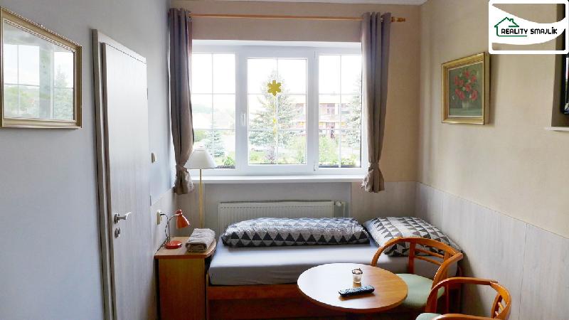 Objekt ideální k podnikání i bydlení - budova s restaurací a ubytovacími prostory, tradice více jak 200 let, neustále v provozu. B Rozbalitudova je samostatně stojící, částečně podsklepená se 2.NP a půdním prostorem: v 1.NP se nachází restaurační zařízení (restaurace, výčep, spojovací chodby, kuchyň, schodiště, WC pro muže, WC pro ženy, skladové prostory, úklidová komora, 2 pokoje, garáž (sklad) přístupné z pozemku), 2.NP slouží k ubytování a k bydlení (byt 3+1 s balkonem), schodiště s chodbou, 4 x pokoj se sociálním zařízením. Půdní prostor - je možnost event. další vestavby vzhledem k ploše a výšce prostor (k dispozici projekt). Okna jsou plastová, ve 2.NP i protihluková. Vnitřní rozvody el. instalace a plynu v mědi, pitné vody a kanalizace v plastu. Vytápění je plynovým kotlem s rozvodem do radiátorů, popř. alternativně krbovými kamny. Ohřev vody zajišťují el. bojlery, nášlapné povrchy podlah jsou z keramické dlažby, plovoucích podlah, betonu, schodiště je dřevěné. Venkovní úpravy jsou v rozsahu - přípojky plynu, elektro, kanalizace, vodovodního řadu. Objekt má vlastní studnu, ze které je voda využívána na splachování WC. Měsíční provozní náklady: voda 2000 Kč, plyn 4000 Kč el. energie 8000 Kč.